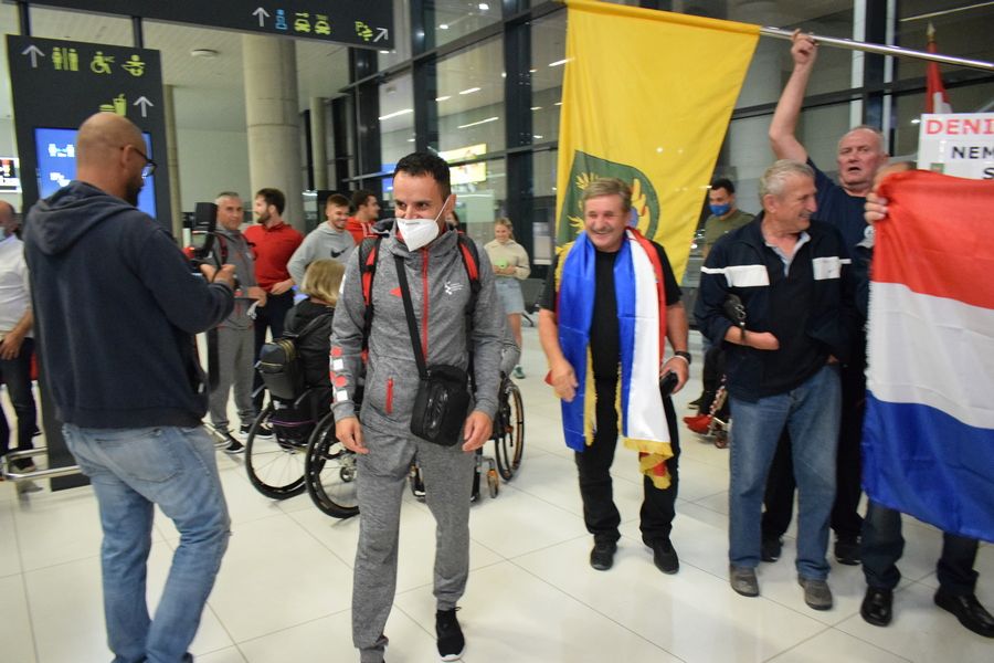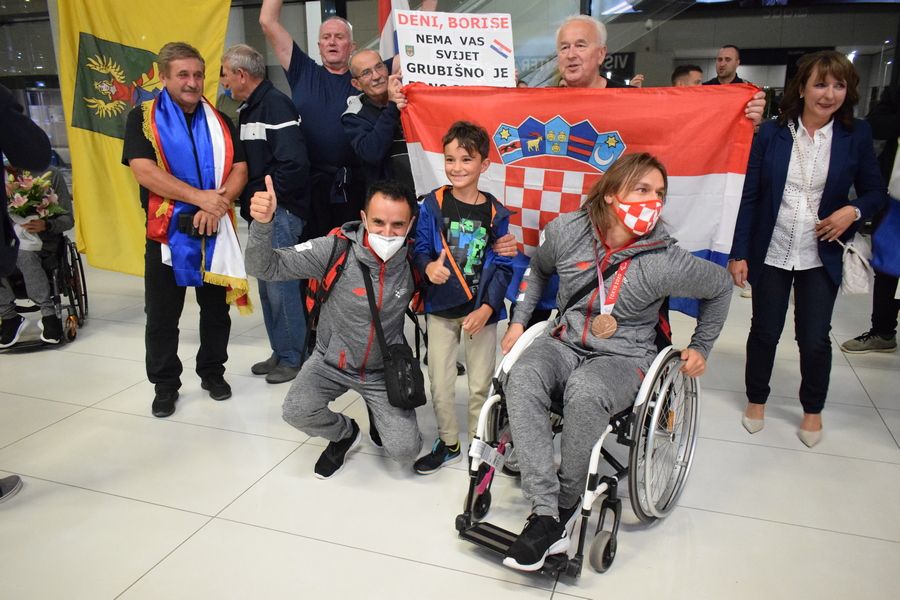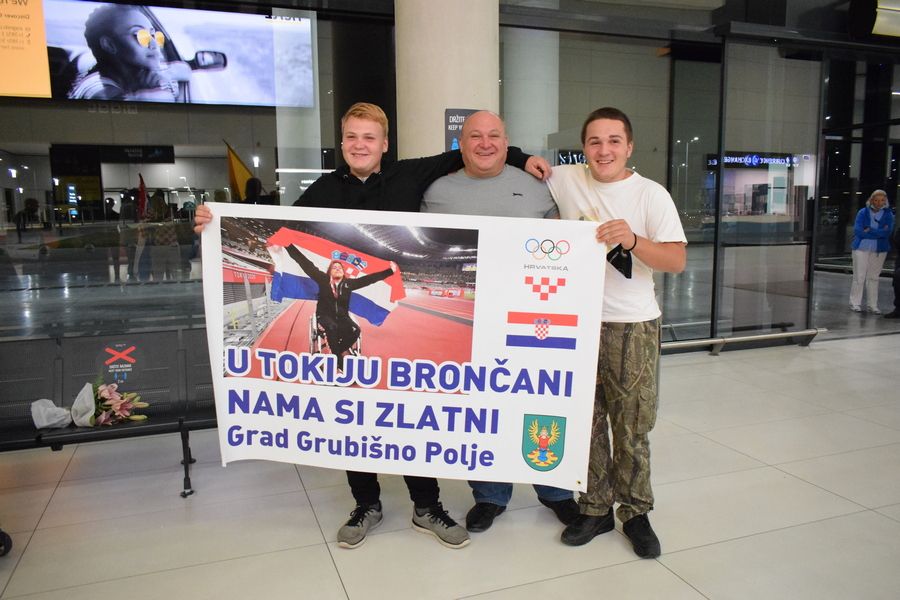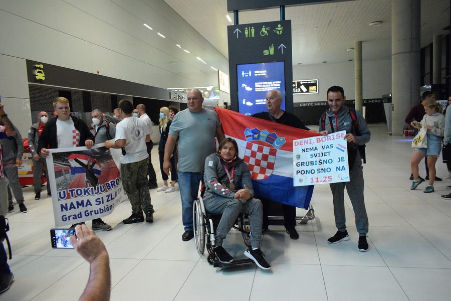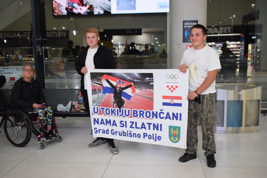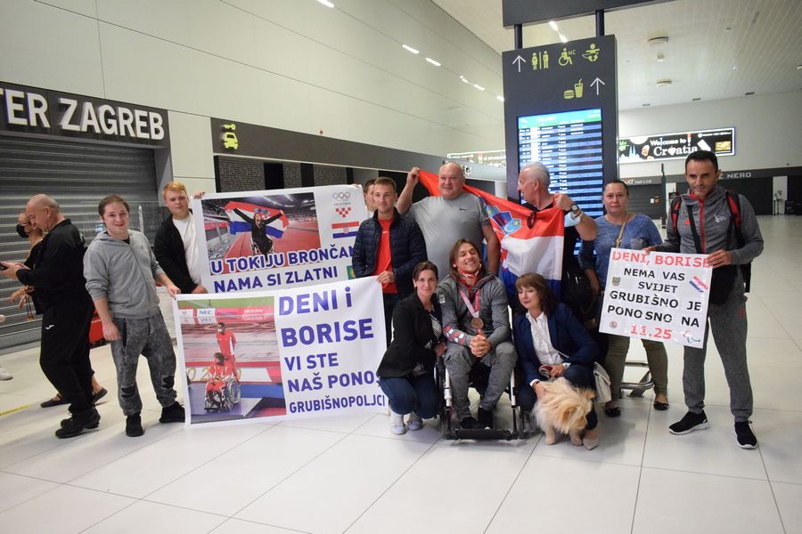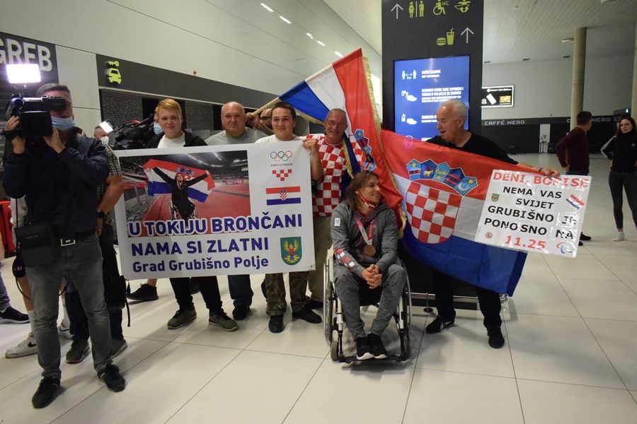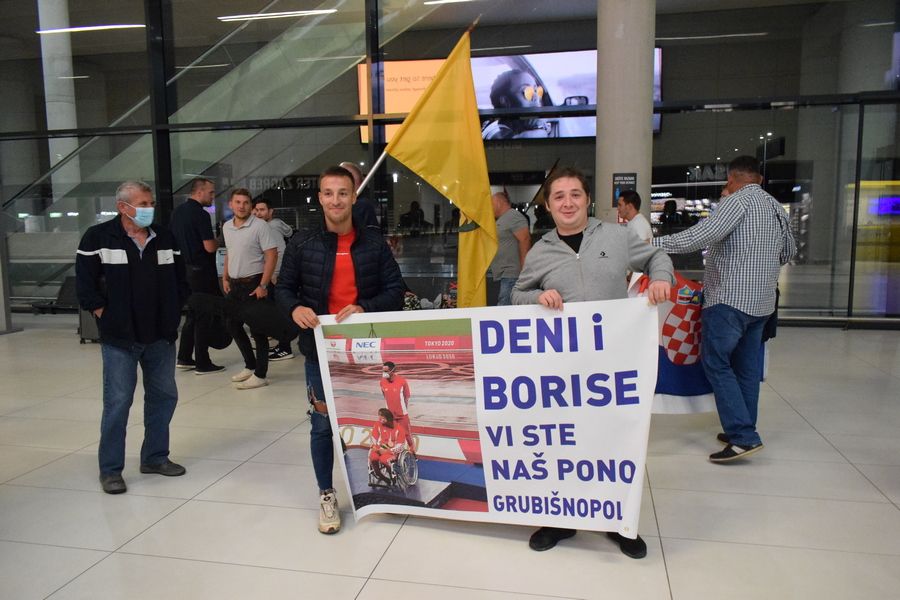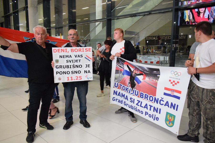 Tim su transparentima dobrodošlice u zagrebačkoj Zračnoj luci dr. Franjo Tuđman preksinoć Grubišnopoljci dočekali brončanog paraolimpijca Denija Černija i njegova trenera Borisa Kljaića, koji su se u okviru posljednje grupe hrvatske paraolimpijske delegacije te večeri vratili iz Tokija.