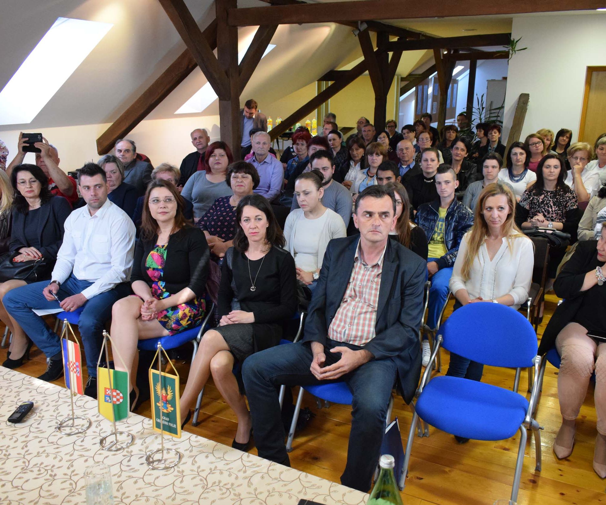Na tribini su govorili državni tajnici Marin Strmota i Margareta Mađerić, saborski zastupnik Miro Totgergeli i gradonačelnik Zlatko Mađeruh