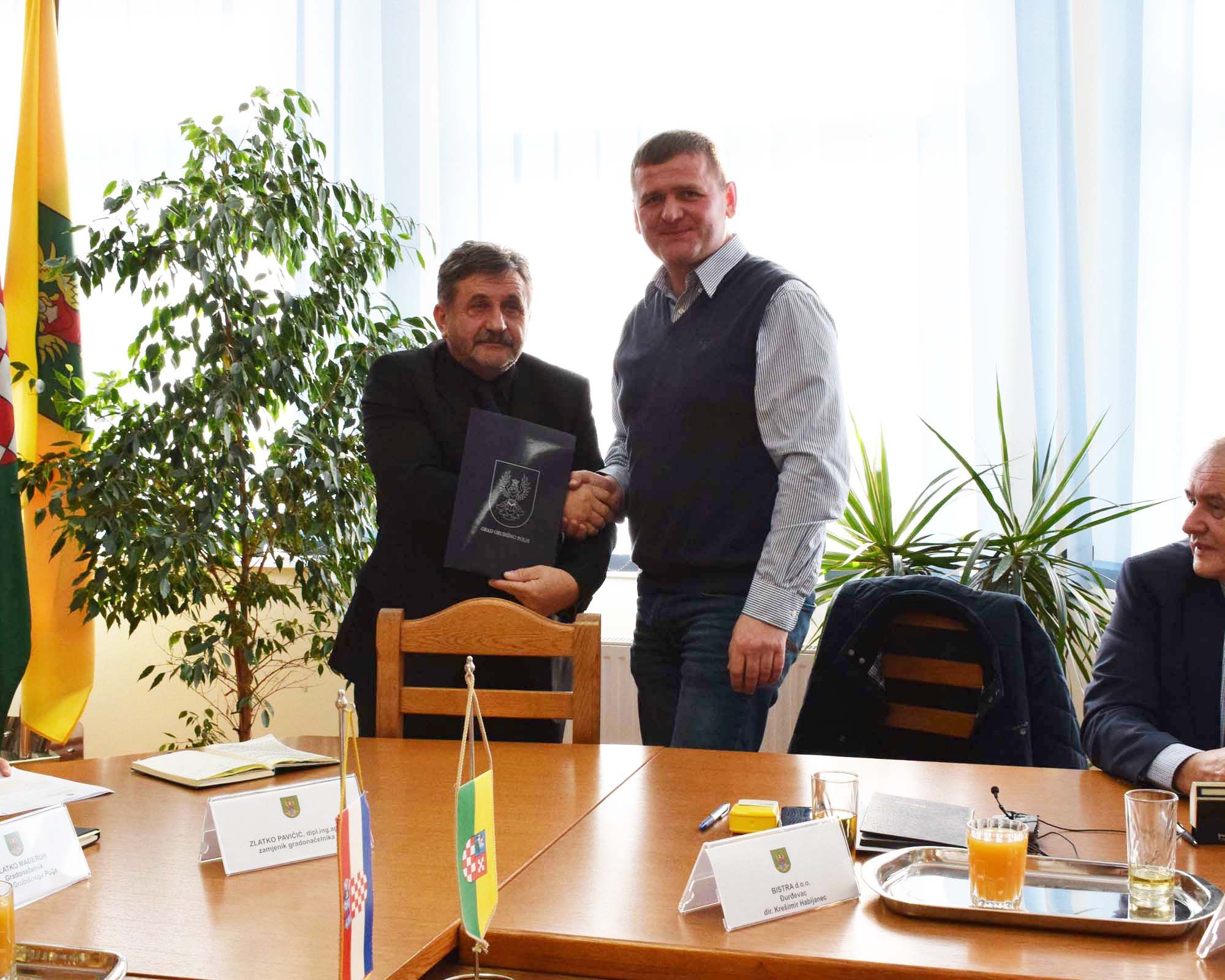 Gradonačelnik Zlatko Mađeruh ugovore je potpisao s čelnicima tvrtki Bistra Đurđevac, Teding Zagreb i B-PROJEKT Bjelovar