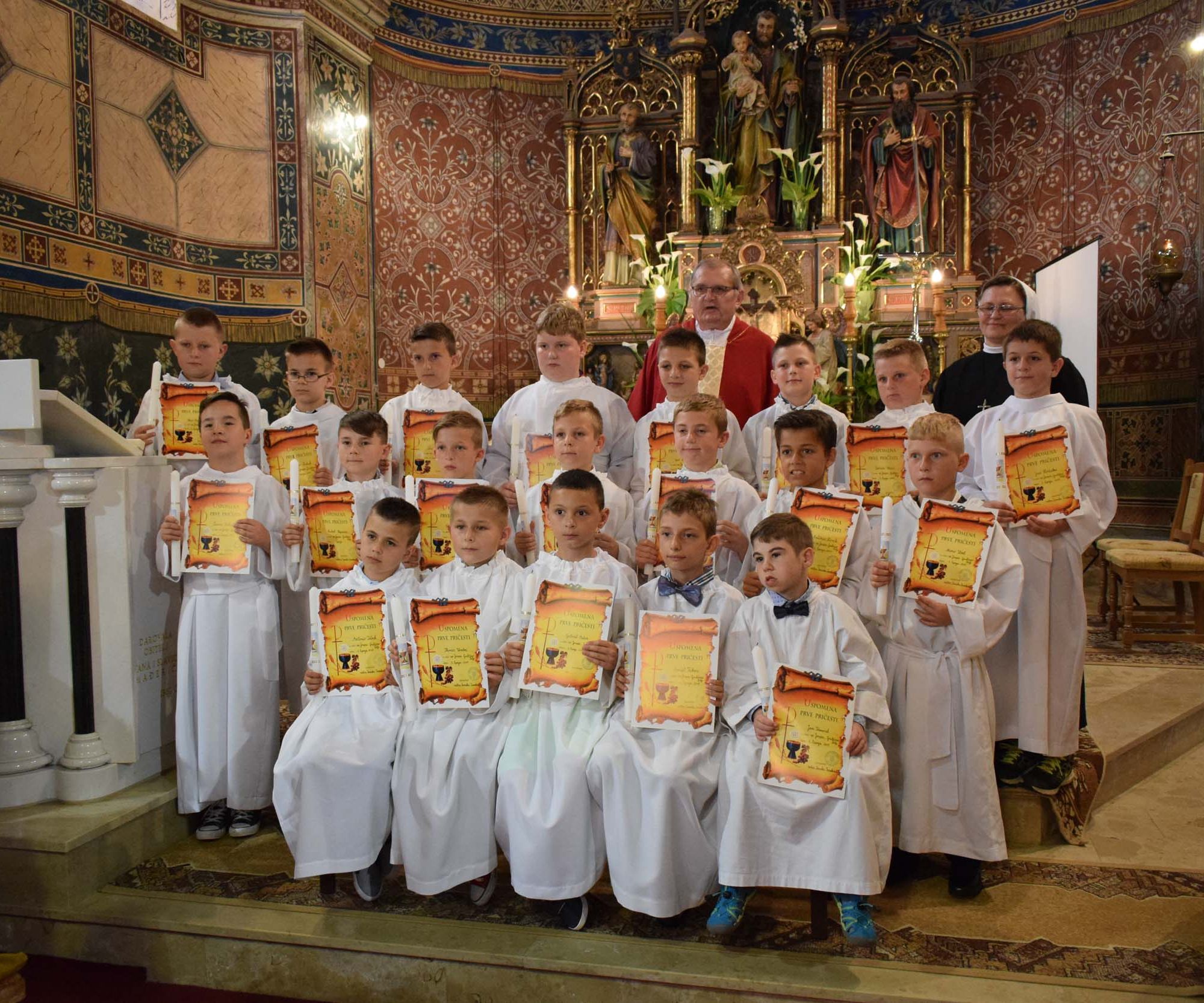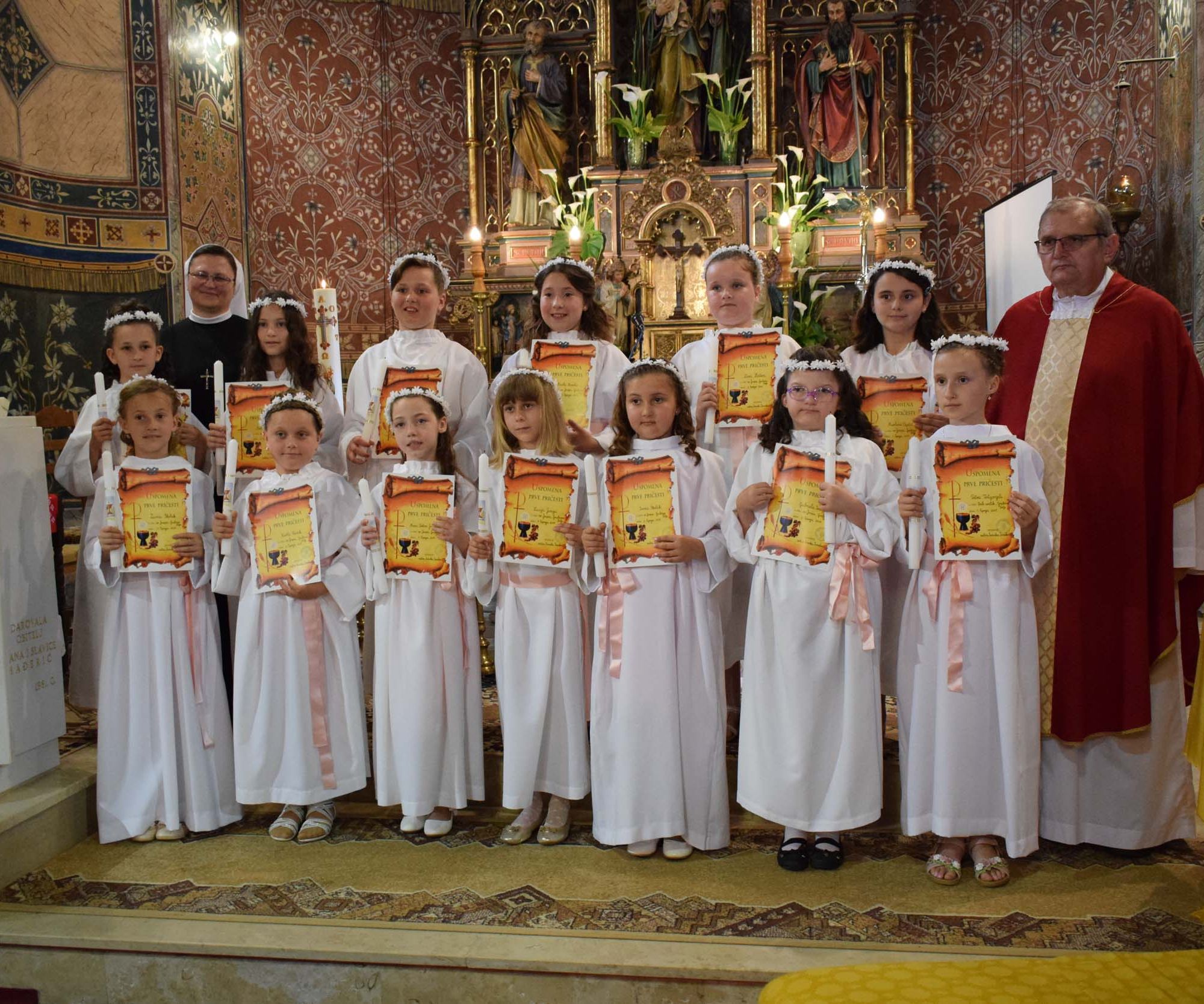 Jučer, na blagdan Duhova, 33 malih Grubišnopoljaca i petero Velikozdenčana primilo je sakrament prve pričesti. Dan prije svečanosti održanih u crkvama sv. Josipa i Svih svetih, mali su prvopričesnici po prvi puta pristupili i sakramentu svete ispovijedi i tako spremni dočekali nedjeljno prvo njihovo blagovanje tijela Kristova, odnosno prvu svetu pričest koja je uz krštenje i potvrdu sakrament kršćanske inicijacije. Mali su se prvopričesnici za te sakramente pripremali tijekom cijele školske godine vjeronaukom u školi i župi uz časnu sestru Ivanku, a na misi i sami odaslali nekoliko poruka. I dio njihovih roditelja zajedno je sa svojom djecom imao svoju ulogu u svečanosti.