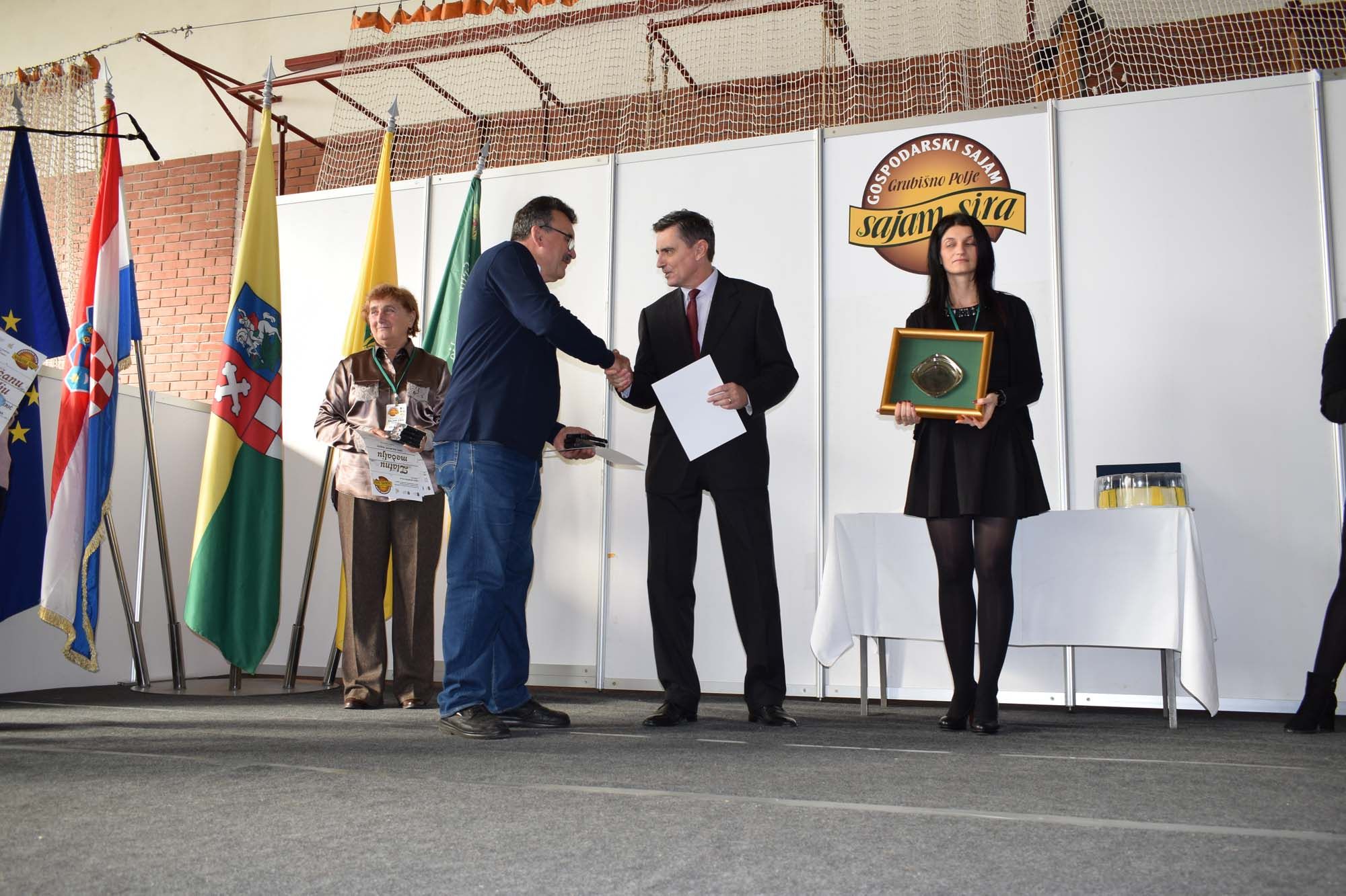 Redoviti sadržaj drugoga dana sajma je dodjela nagrada prema rezultatima ocjenjivanja sireva i drugih proizvoda, koje su proveli stručnjaci Agronomskoga fakulteta u Zagrebu. Oni su ocjenjivali 37 uzoraka, među kojima je 30 dobilo jednu od medalja: sedam brončanih, devet srebrnih i 12 zlatnih.–Ukupno je nagrađeno 80 posto onih koji su svoje proizvode dali na ocjenjivanje. Godinu dana ranije bilo je 24 proizvoda od kojih je 17 nagrađeno, odnosno 71 posto. Evidentno je da je ove godine veći broj proizvođača i veći broj odličja, što govori da je ove godine kvaliteta bila vrlo dobra- rekao je prof.dr. Neven Antunac sa Zavoda za mljekarstvo Agronomskog fakulteta u Zagrebu.