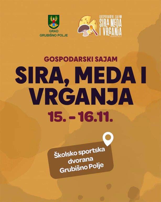 Sutra u grubišnopoljskoj školsko-sportskoj dvorani vrata otvara 19. dvodnevni Gospodarski sajama sira, meda i vrganja, drugu godinu zaredom uz sir u ruhu meda i vrganja. Posjetitelje će dočekati stotinjak izlagača, među kojima je 70 posto proizvođača, najviše OPG-ovaca, nešto obrta i tvrtki. To je 20 postotno povećanje izlagača iz proizvodnih djelatnosti nego dosad. Sirara je sedam, a pčelara 14.